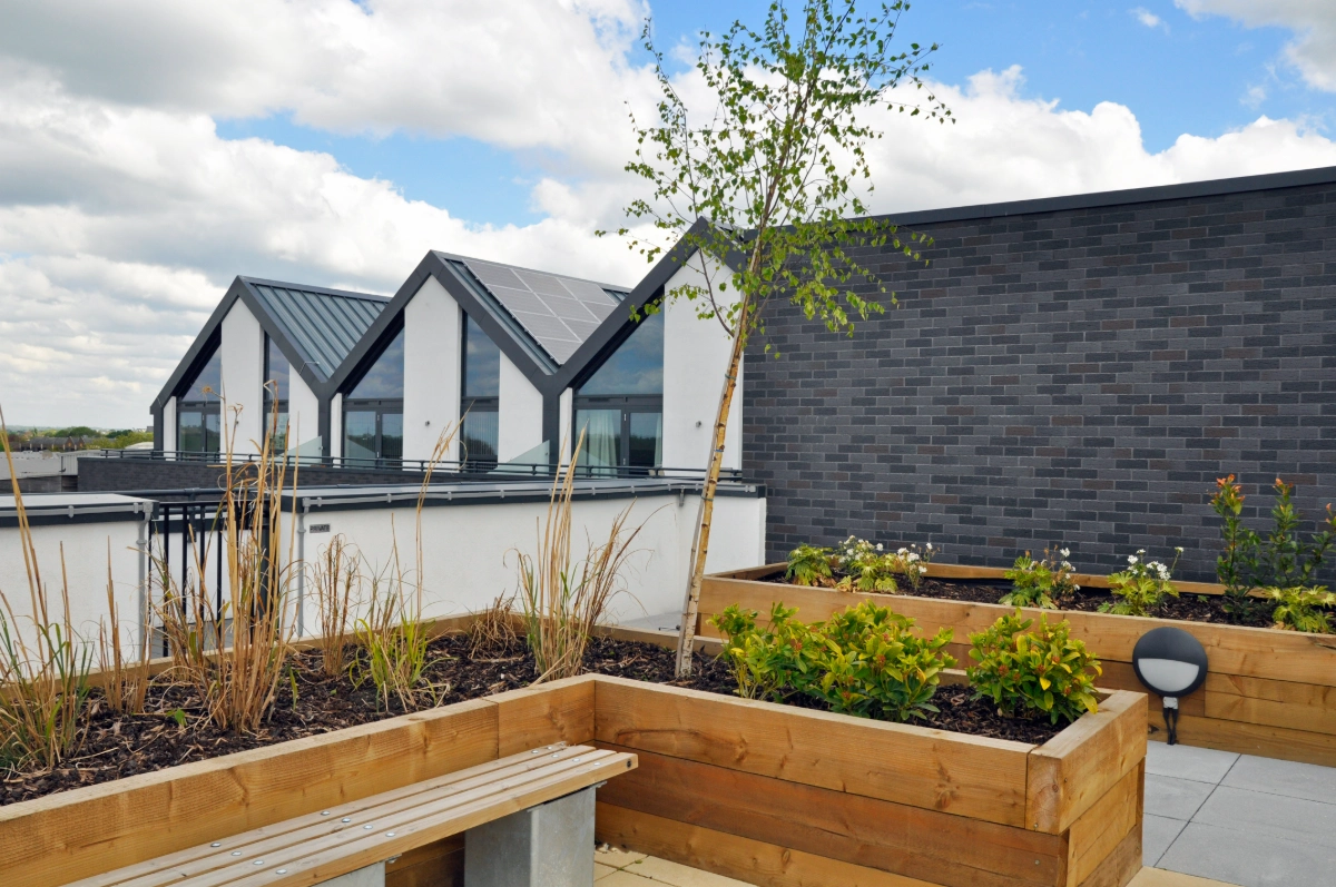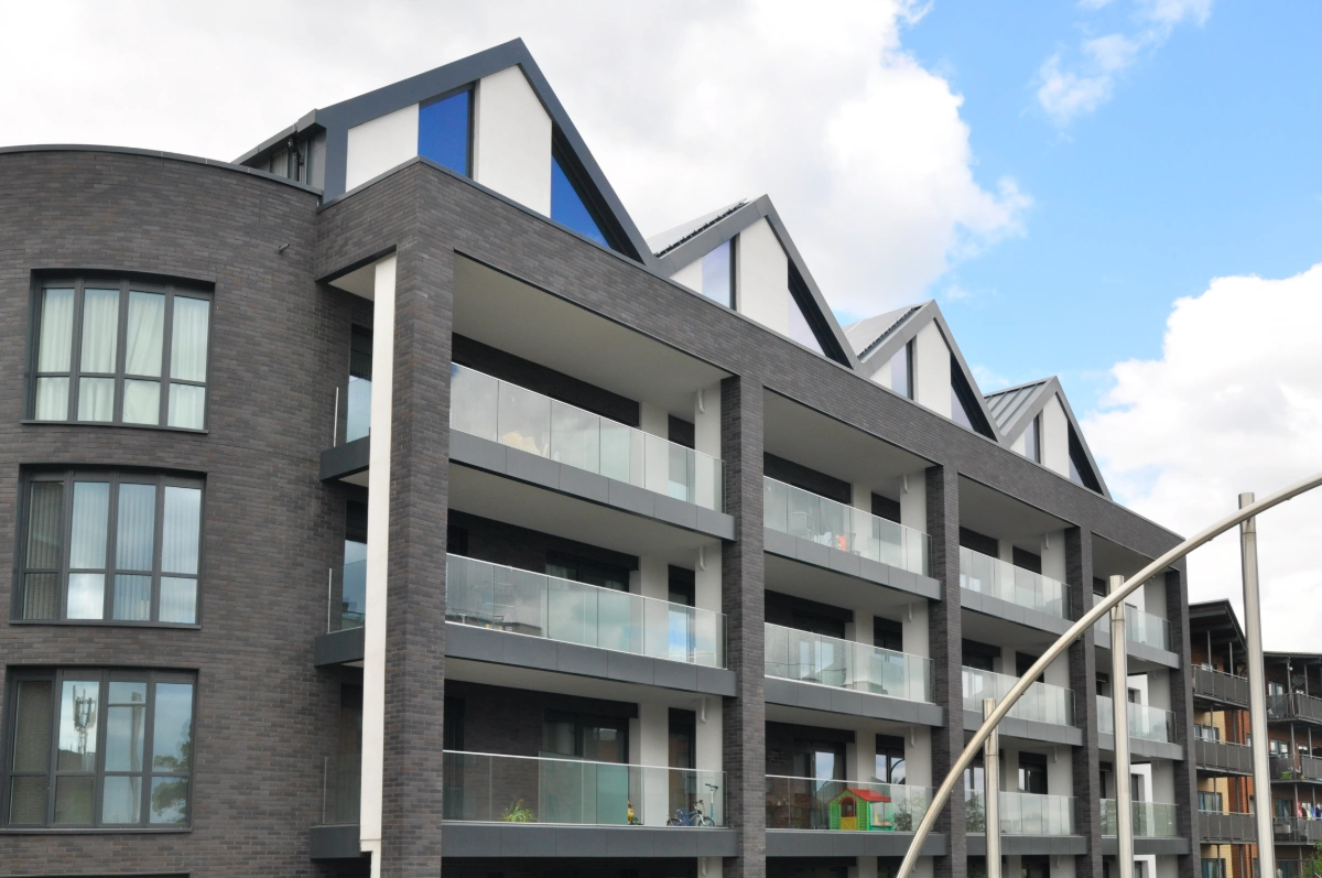 A beautiful canal front residential development of 52 units. Our scope of works comprised of Full Envelope Package consisting of SFS backing structure, Sapa Windows and Doors, Corium external brick cladding system, Q railing balcony glass, Apartment dividing screens, Mariseal liquid applied membrane, Alwitra single ply membrane, Kalzip roofing system, Wetherby Insulated External Render System, Flashing, Cappings.