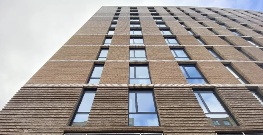 Major new-build residential development creating 480 new homes on a former Homebase site in Wandsworth, London. The scheme comprised five blocks with three link buildings ranging from 12 to 17 storeys. Our scope of works consisted of the design, supply and installation of 3,500m² of Petrarch stone cladding, 750m² of aluminium rainscreen and 1,000m² of aluminium soffits.