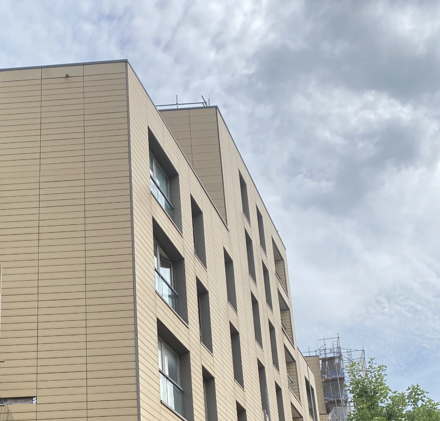 At The Quadrant, our works involved the removal of existing non-compliant cladding and replacement with modern, compliant systems. This included the design, supply, and installation of 8,100m² of terracotta tile cladding alongside 9,000 linear metres of aluminium cappings and flashings — delivering a full façade remediation to current safety and performance standards.